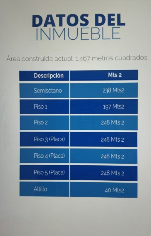 media Fotos Ant Siguiente « » Detalles Edificio para Venta en Piedra de Bolivar Valor: COP 2.800.000.000Administración: 0Área: 1467 m2Área construccion: 1467 m2Área lote: 248 m2Tipo de negocio: VentaLocalización: Cartagena›Piedra de BolivarTipo de inmueble: EdificioCódigo : 36569Características InterioresNo de habitaciones: 15Baños: 17Amoblado: NoGaraje: 6Aire Acondicionado: SiCaracterísticas ExterioresPiscina: NoAscensor: NoEstrato: 3