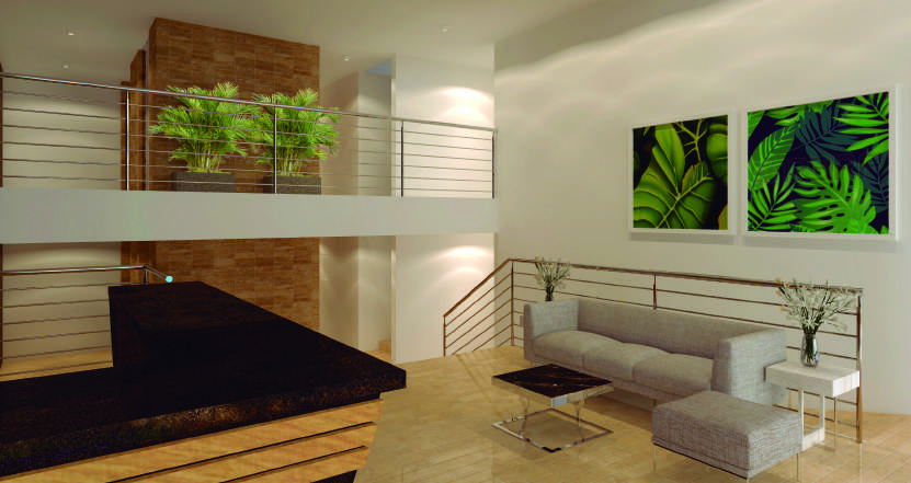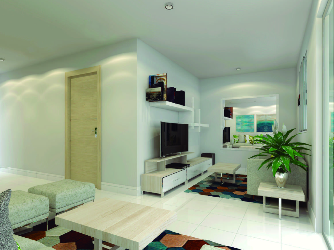 • Pisos para la sala y el comedor en Porcelanato Beige 60×60 o similar.