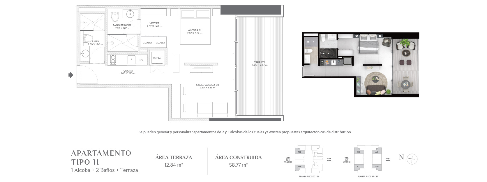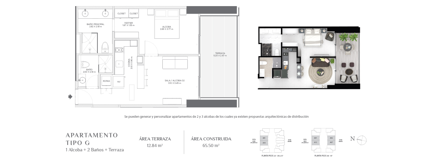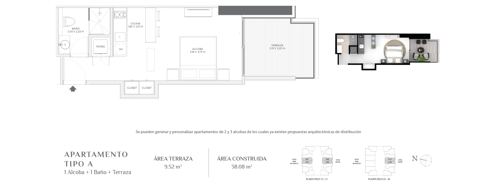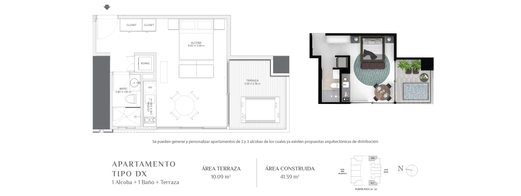 Con áreas desde 34,72 m² hasta áreas muy amplias de acuerdo al gusto y posibilidades de cada comprador.