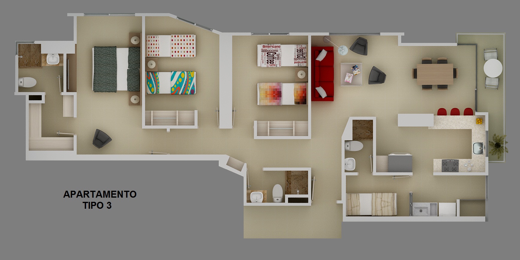 Apartamento tipo 3: 115.28 M2 y 115.29M2