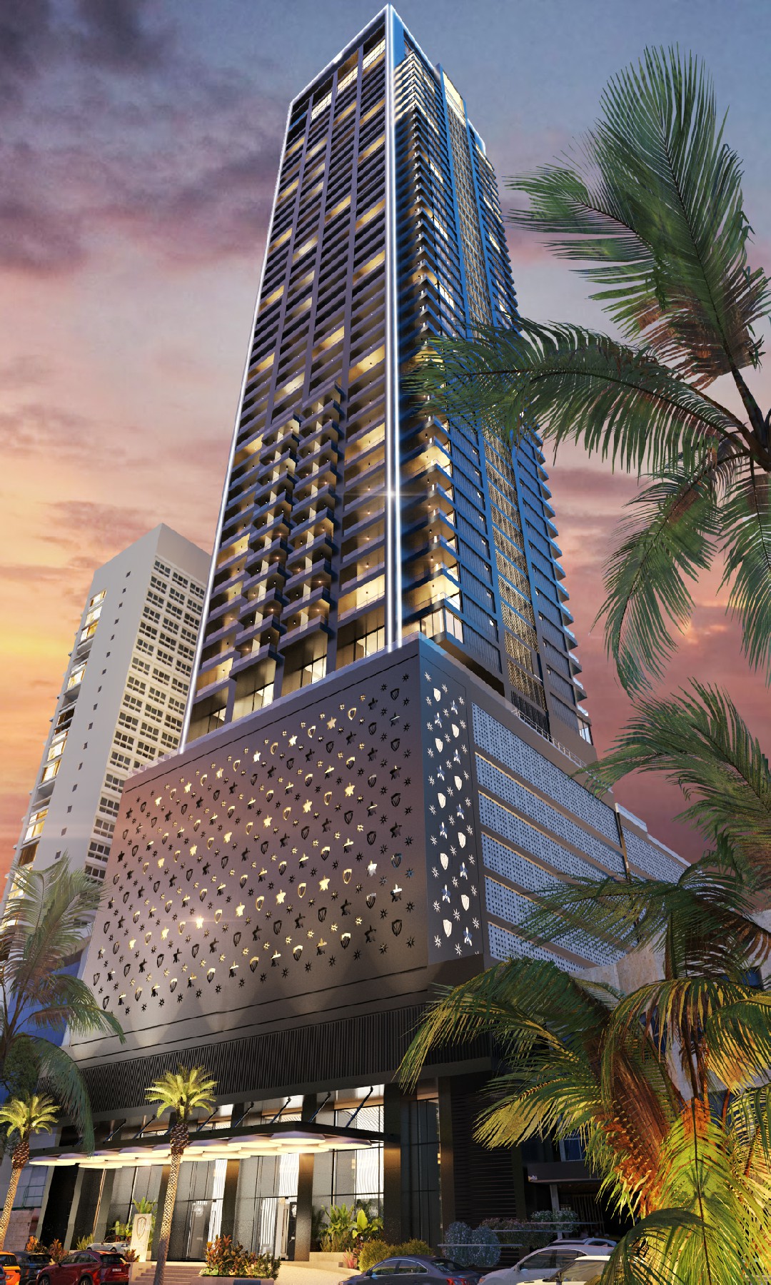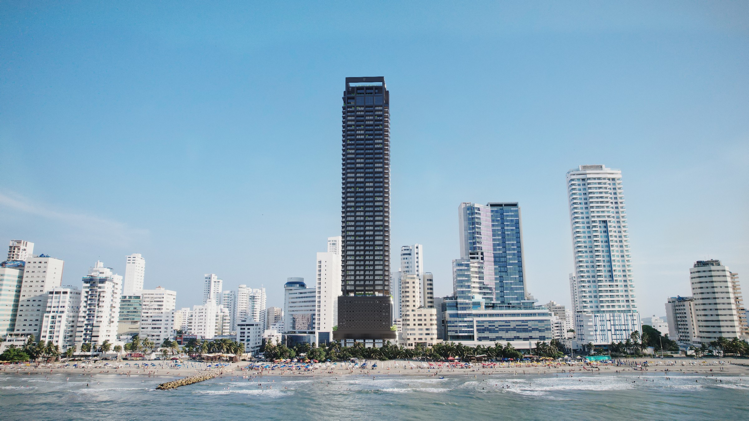 INVICTVS es un rascacielos negro de 188 metros de altura, una imponente torre de 53 pisos que emerge frente al mar, teniendo como escenario el azul del cielo y custodiada por la legendaria bahía de Cartagena de Indias.