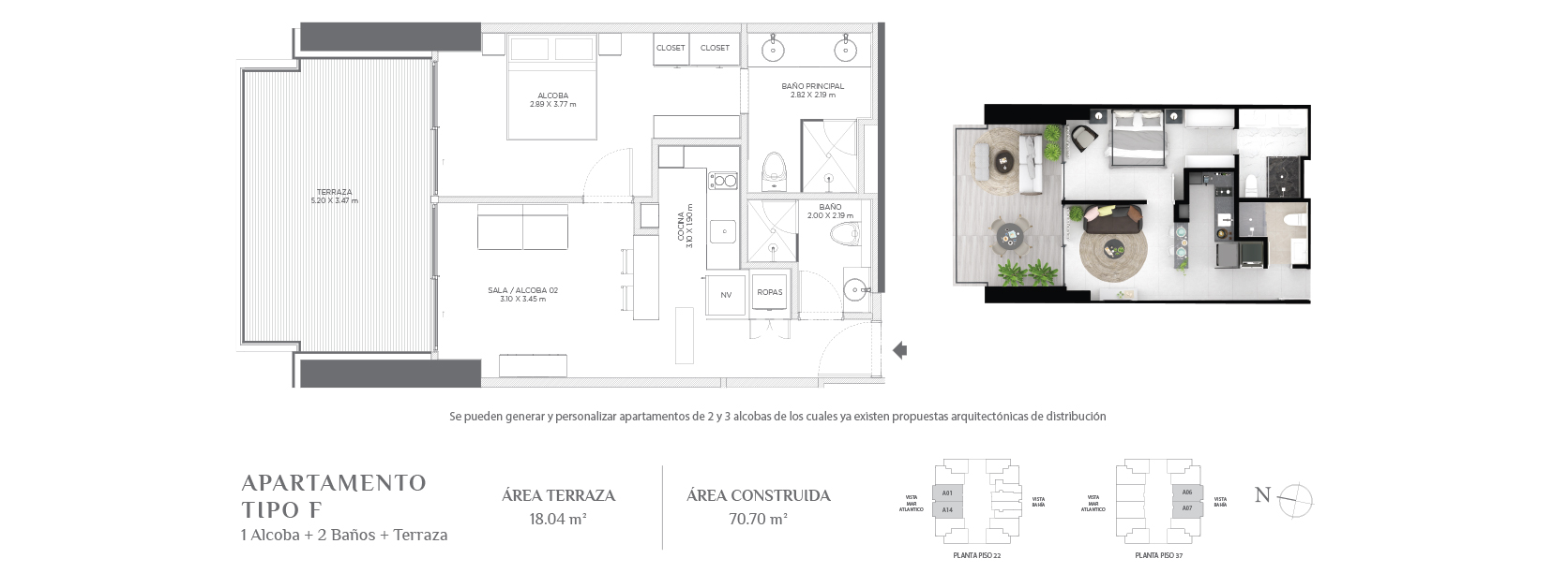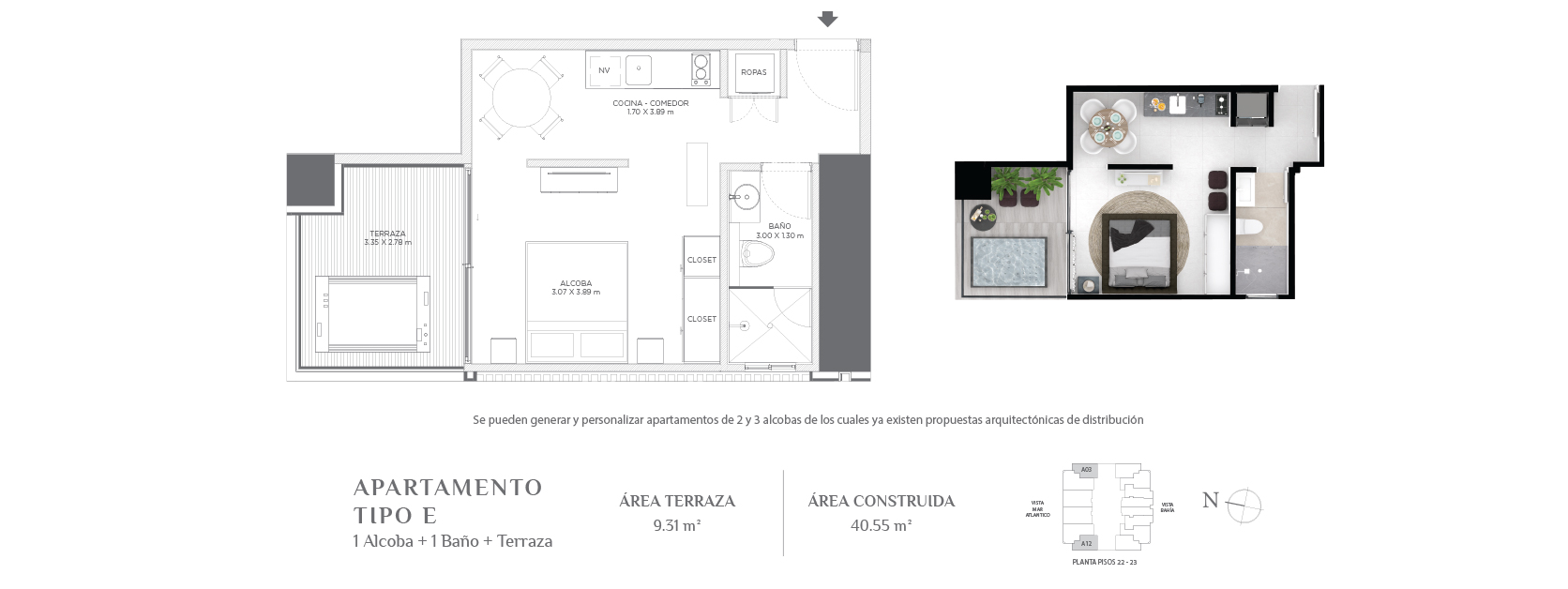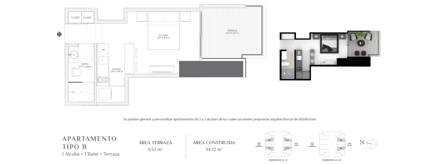 Con áreas desde 34,72 m² hasta áreas muy amplias de acuerdo al gusto y posibilidades de cada comprador.