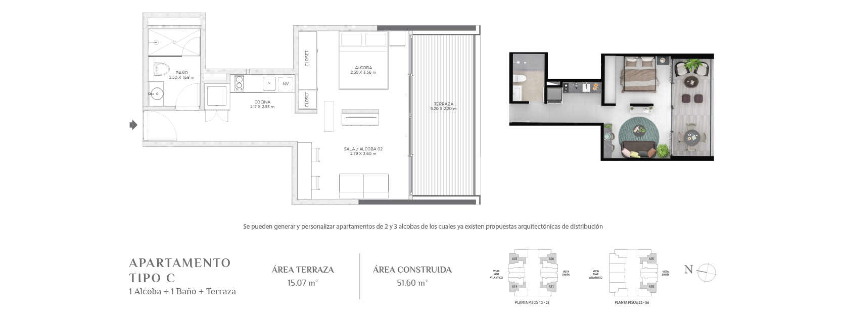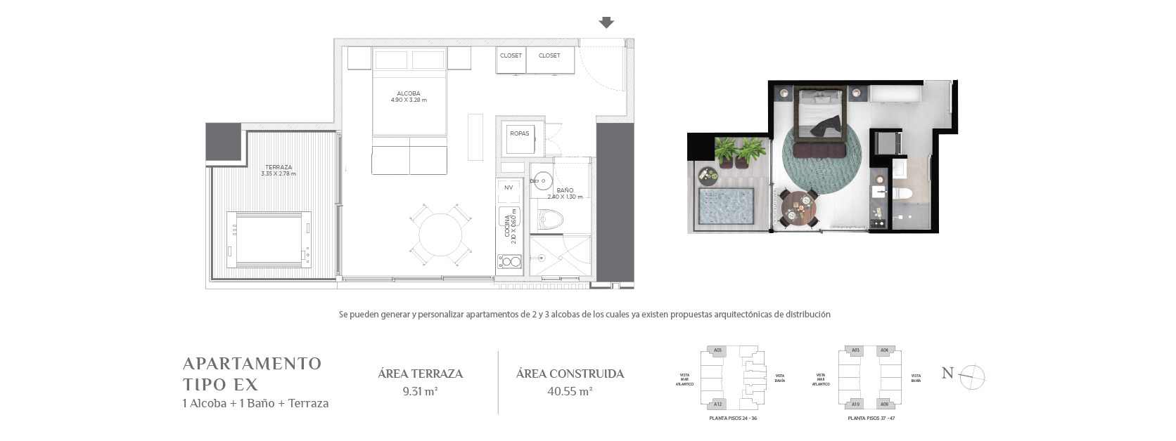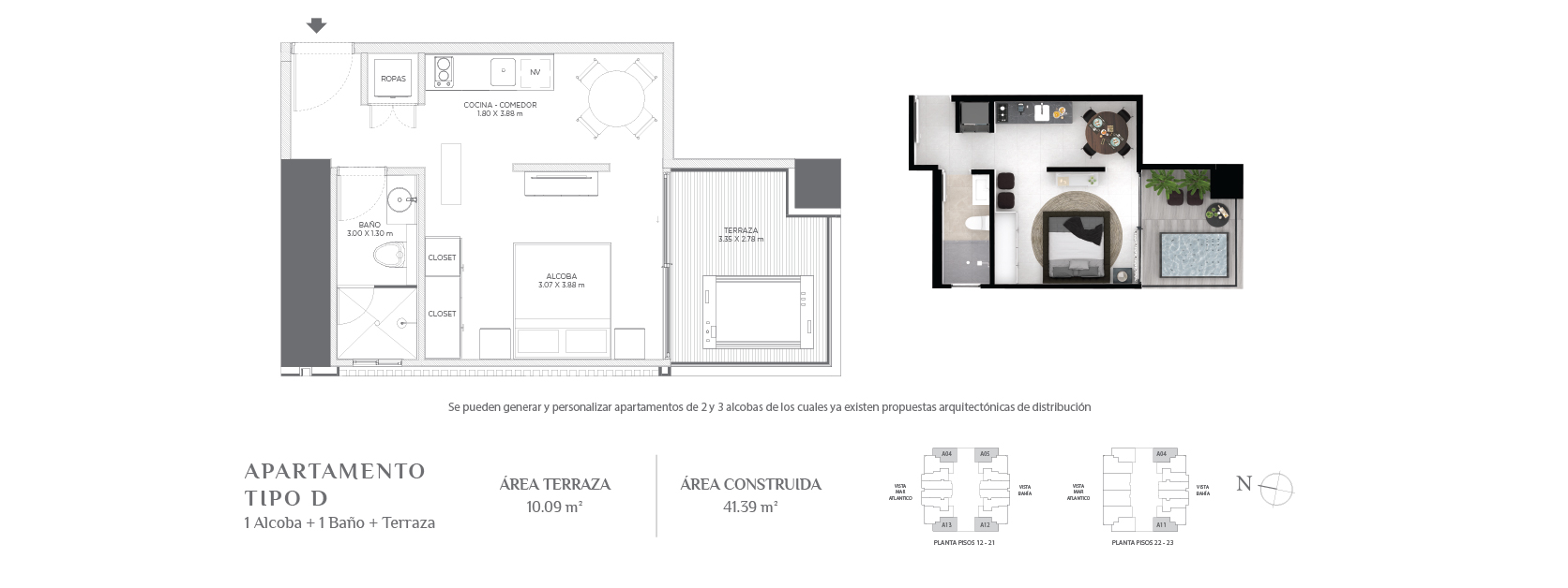 Con áreas desde 34,72 m² hasta áreas muy amplias de acuerdo al gusto y posibilidades de cada comprador.